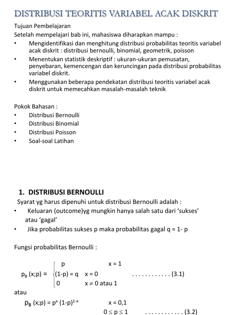 Distribusi Probabilitas Diskrit Binomial Multinomial Bernoulli 21 10 16 7 Usaha Percobaan Terdiri Dari Beberapa Usaha Tiap Tiap Ulangan Contoh Soal U Tabel Binomial Pdf Document