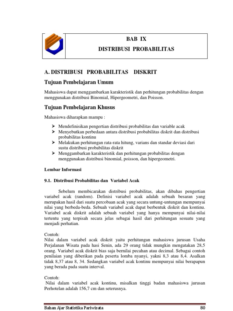 Distribusi Probabilitas Khusus Pdf Probstat Seh1f3 Vi Distribusi Probabilitas Khusus Diskrit Dan Kontinyu 6 1 Distribusi Probabilitas Khusus Diskrit Course Hero