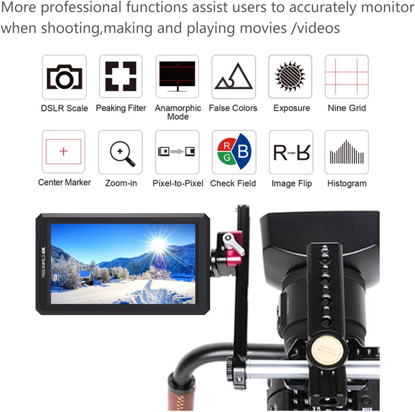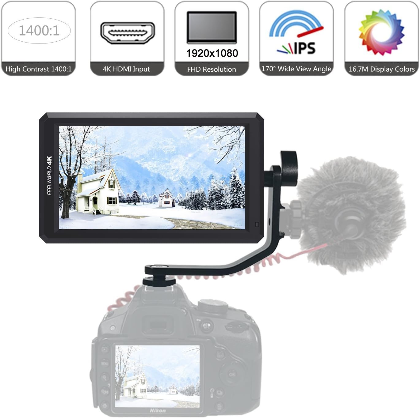 Amazon Com Feelworld F6 Hd On Camera Monitor 5 7inch Ips 1920x1080 4k Dslr Hdmi Field Video Monitor With Tilt Arm Dc 8v Power Output For Canon Nikon Panasonic Dslr And Mirrorless Camera Toys