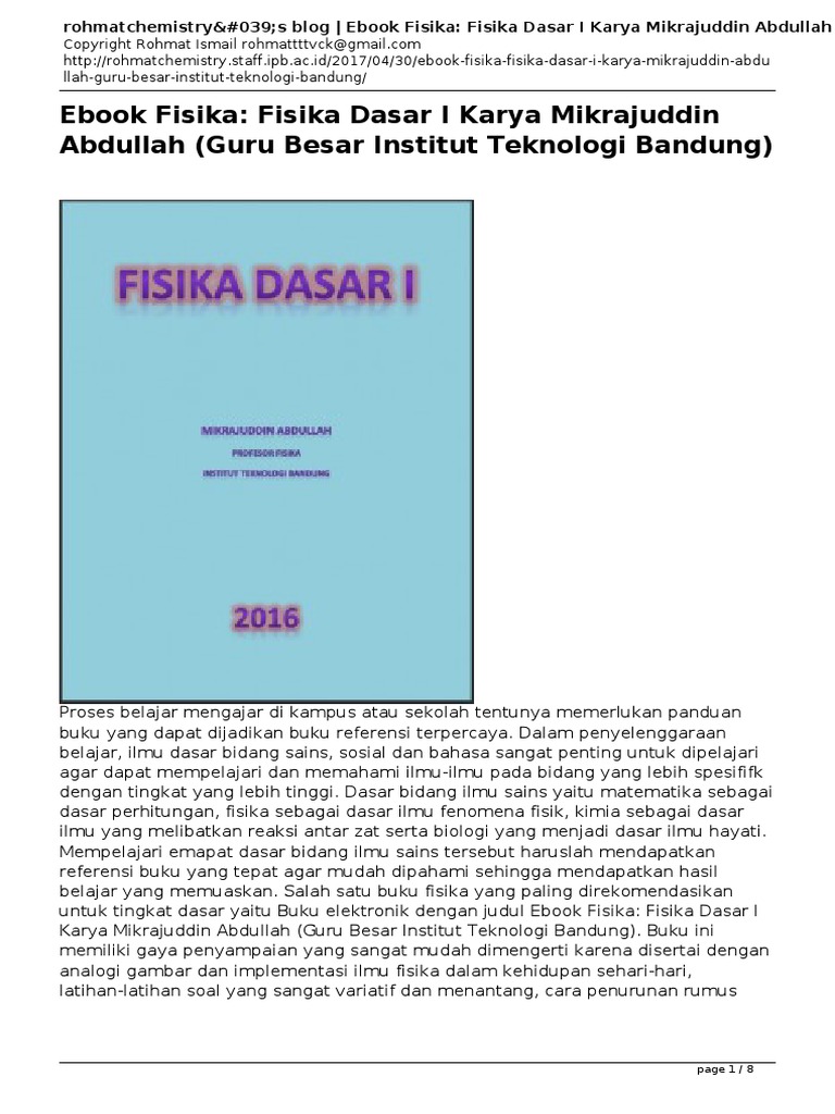 Ebook Fisika Fisika Dasar Ii Karya Mikrajuddin Abdullah Guru Besar Institut Teknologi Bandung Rohmatchemistry S Blog