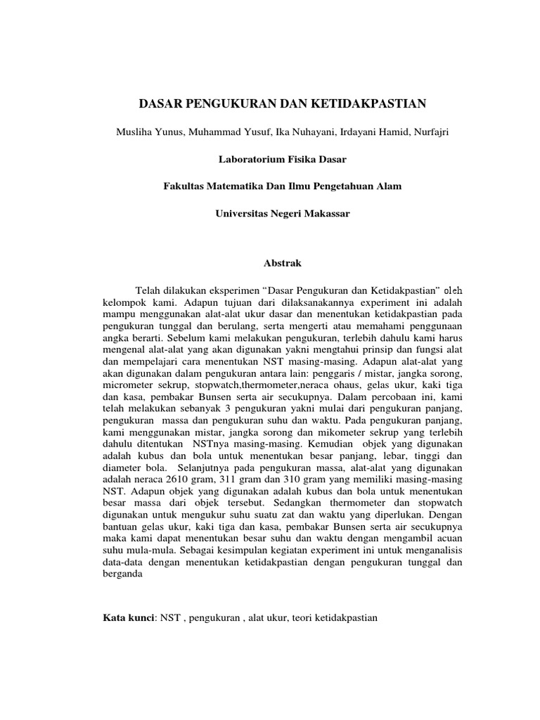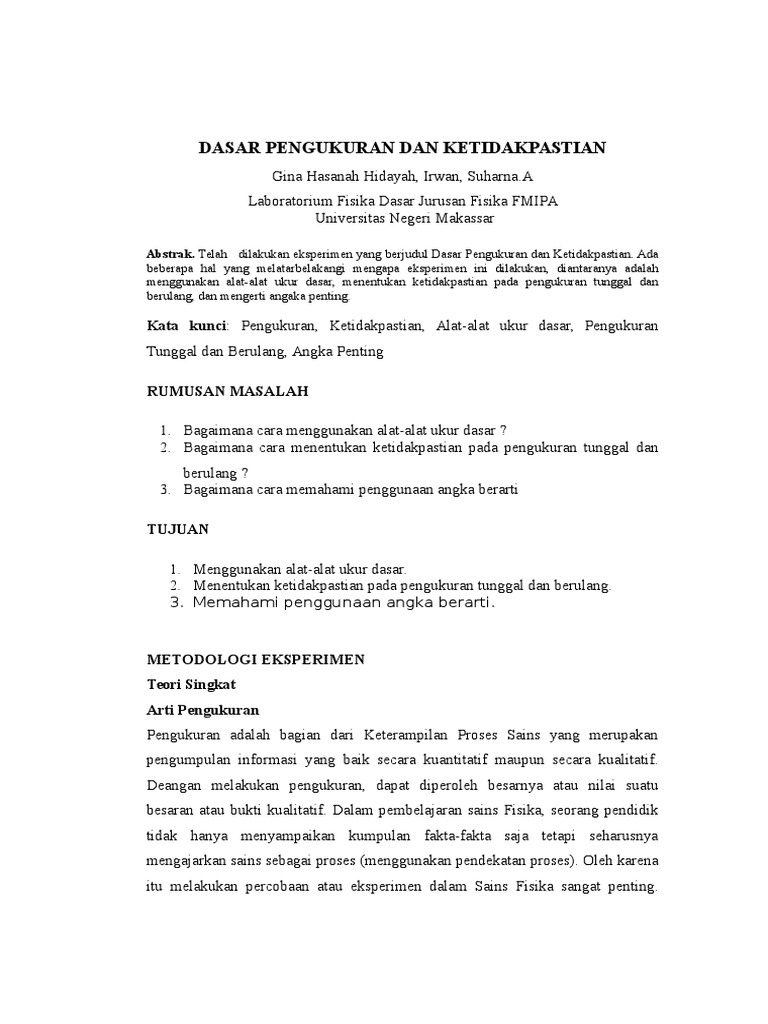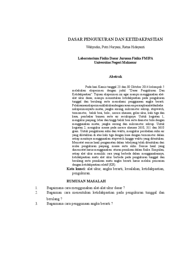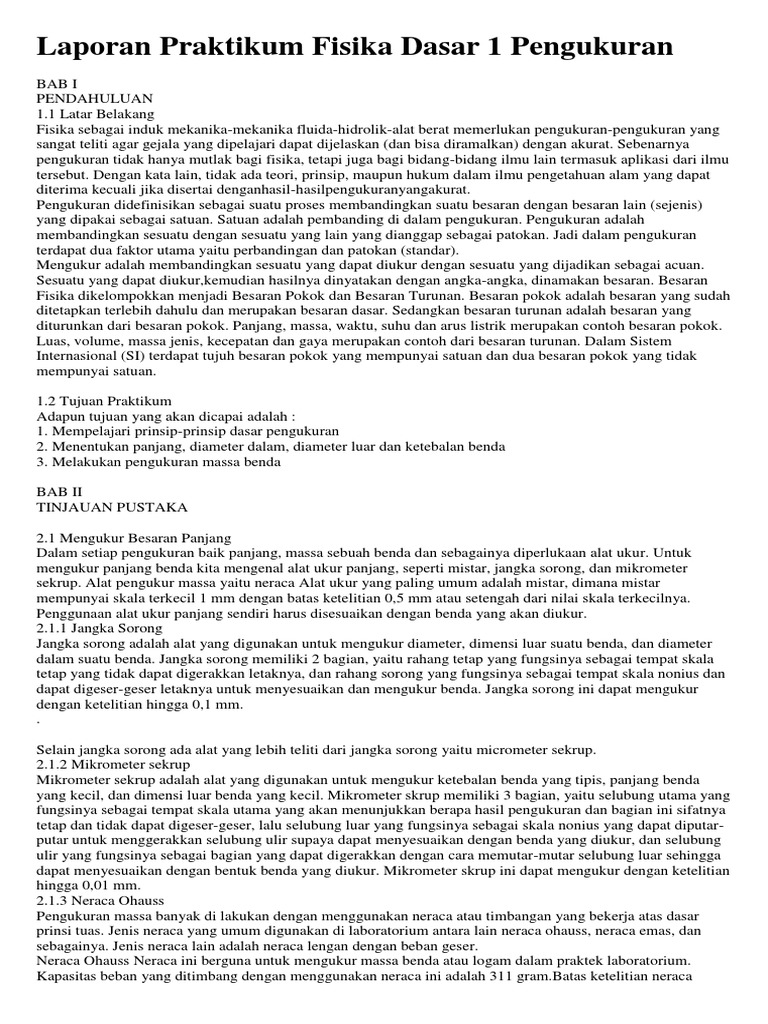 Contoh Latar Belakang Laporan Praktikum Fisika Pengukuran Kumpulan Contoh Laporan