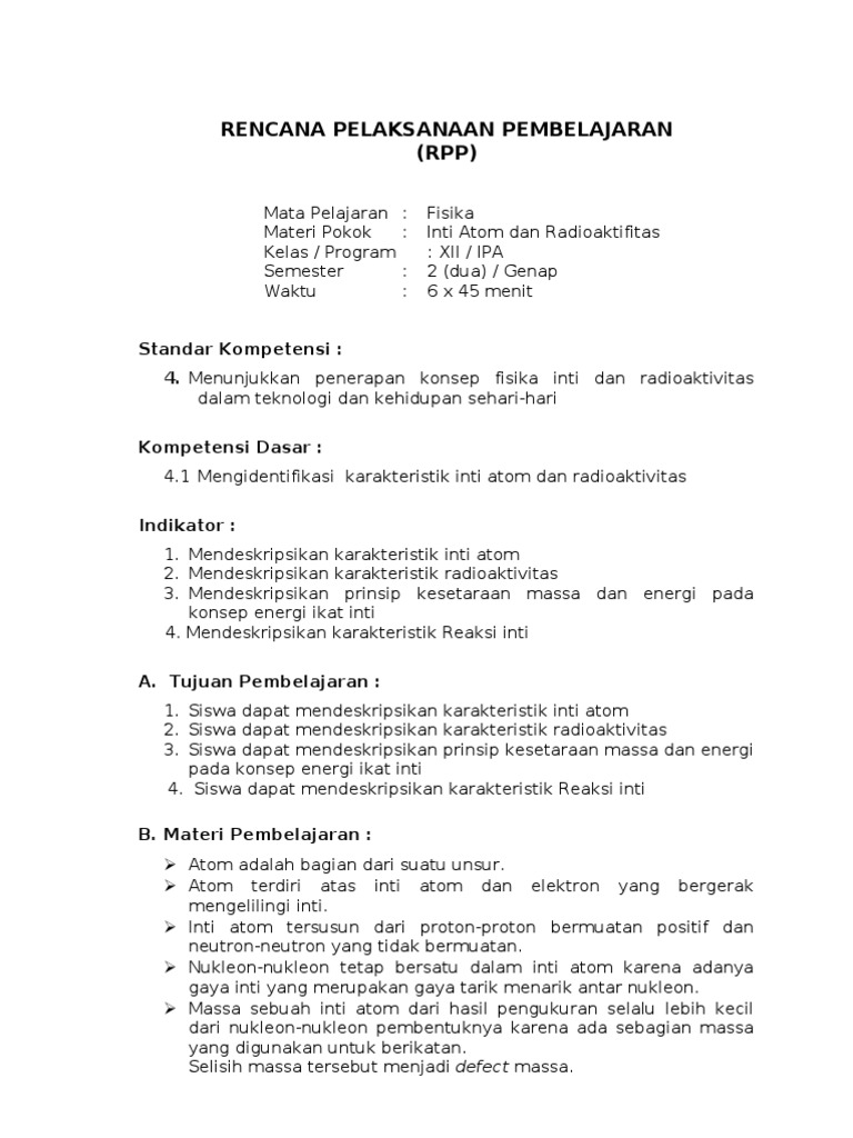 Modul 6 Kb 4 Ppg Spada Materi Pembelajaran 1 Tenaga Ikat Inti 1 1 Perkembangan Fisika Inti Selamat Pdf Document