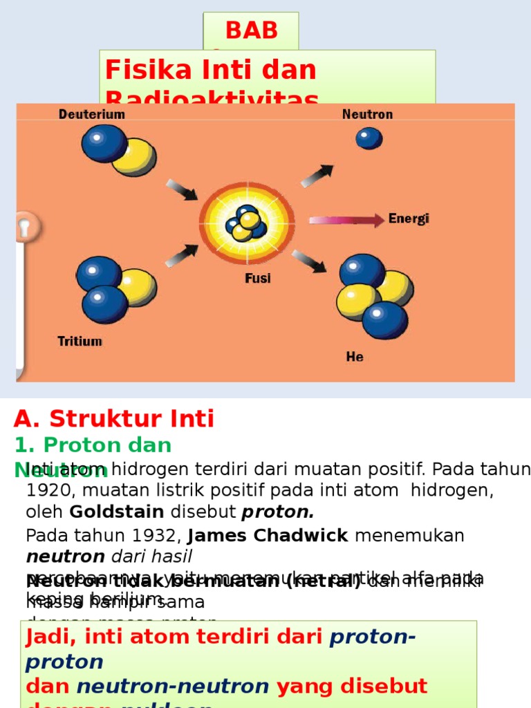 Bab Fisika Inti Dan Radioaktivitas A Fisika Inti Dan Radioaktivitas 12 1 Inti Atom Partikel Partikel Bermuatan Positif Yang Menyusun Inti Yang Disebut Dengan Proton Menurut Pdf Document