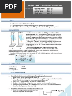 Laporan Praktikum Dan Percobaan Laporan Percobaan Kesetimbangan Benda Tegar Object Equilibrium