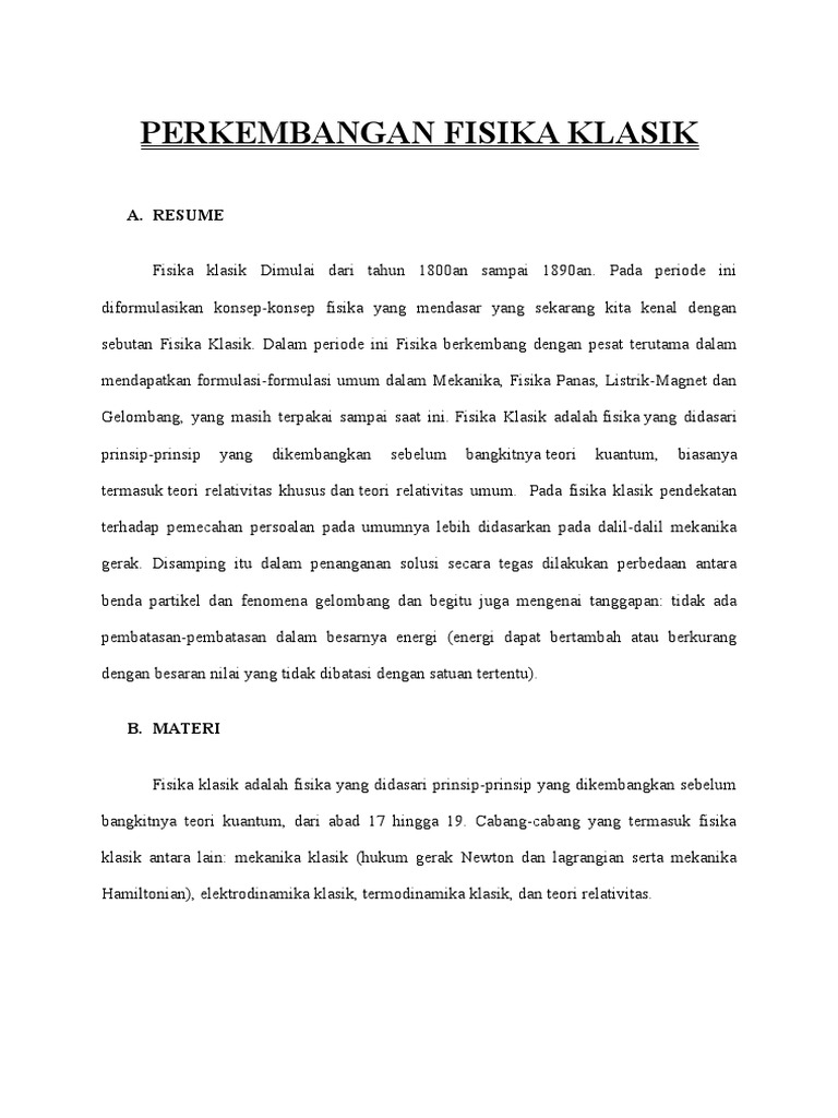 Makalah Perkembangan Fisika Klasik