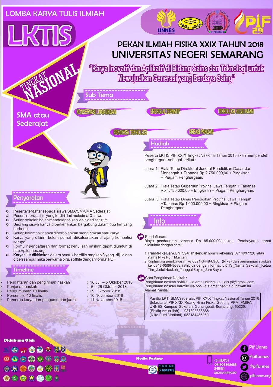 Pekan Ilmiah Fisika Pif Unnes Xxix Tingkat Nasional Tahun 2018 Lomba Karya Tulis Ilmiah Lktis Sma Sederajat Universitas Negeri Semarang Unnes Kpop Squad Media All About K Pop And Intermezzo