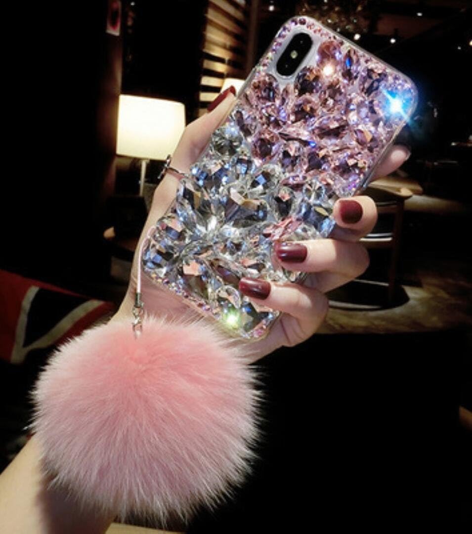 Amazon Com Losin Gemstone Case For Iphone X Iphone Xs Fashion Luxury Bling Diamond Gemstone Cute Fuzzy Furry Plush Fluffy Fur Ball Pendant Soft Tpu Back Case