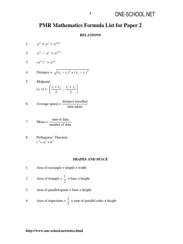 Mathematical Formula Docx Mathematical Formulae Rumus Matematik The Following Formulae May Be Helpful In Answering The Questions The Symbols Given Are Course Hero