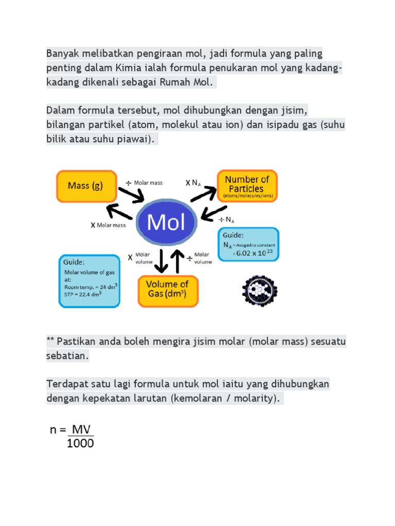Pengiraan Matematik Dalam Kimia Mol Pengiraan Bilangan Mol Formula Molekul Dan Formula Empirik A No Of Moles Mass G Molar Mass B No Of Moles Course Hero