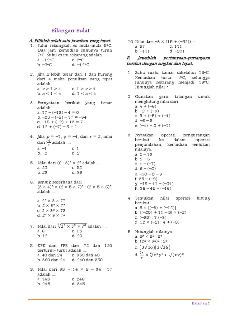 Matematika Kelas 7 Semester 1 By Pkbm Muhammadiyah Taiwan Issuu