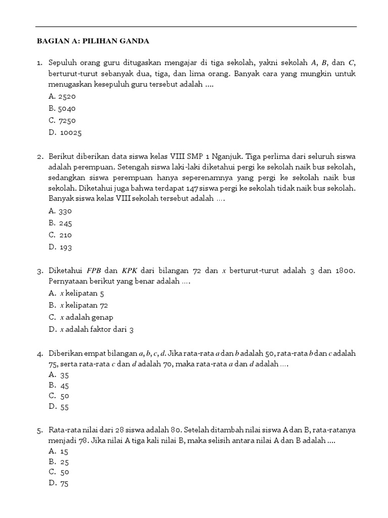 Latihan Ujian Akhir Sekolah Mgmp Matematika 144 Cara Ii Faktor Bersama Kpk 2 36 48 72 18 24 36 2 9 12 18 2 9 6 9 Fpb Dari 24 30 Dan 50 Adalah 362 2 2 12 4 6 2 3 3 Pdf Document