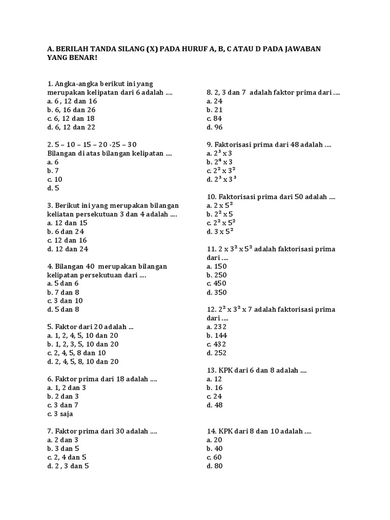 Soal Matematika Kelas 4 Sd Bab 4 Kpk Dan Fpb Dan Kunci Jawaban Www Bimbelbrilian Com