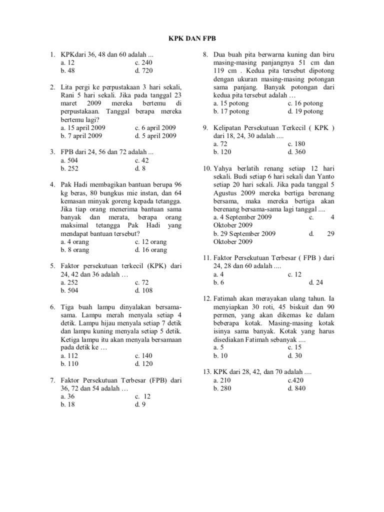Pelajaran Soal Rumus Fpb Kpk Wardaya College