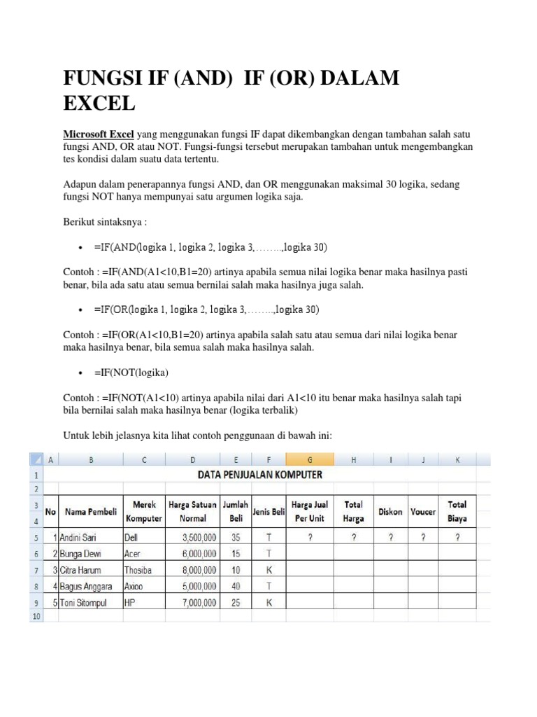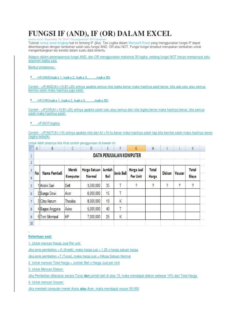 Latihan Soal Excel Fungsi Logika If Dengan And Or Disertai Latihan Soal
