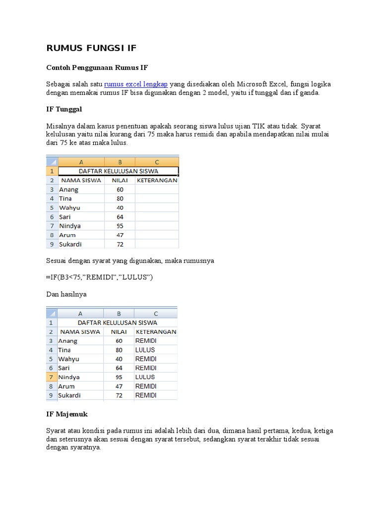Microsoft Excel 2007 Latihan 3 Penggunaan Excel 2007 Latihan 3 Penggunaan Fungsi If Tunggal Dan If Ganda If Majemuk Soal Latihan 3 Pada Sheet 1 Fungsi If Tunggal Soal Latihan Pdf Document