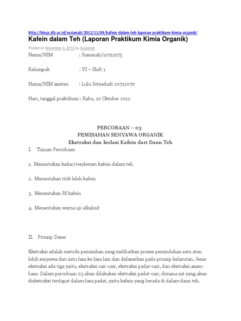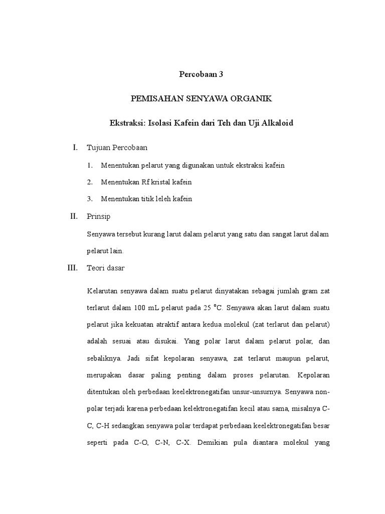 Pemisahan Senyawa Organik Ekstraksi Dan Docx Laporan Praktikum Kimia Organik Ki2051 Percobaan 3 Pemisahan Senyawa Organik Ekstraksi Dan Isolasi Kafein Course Hero
