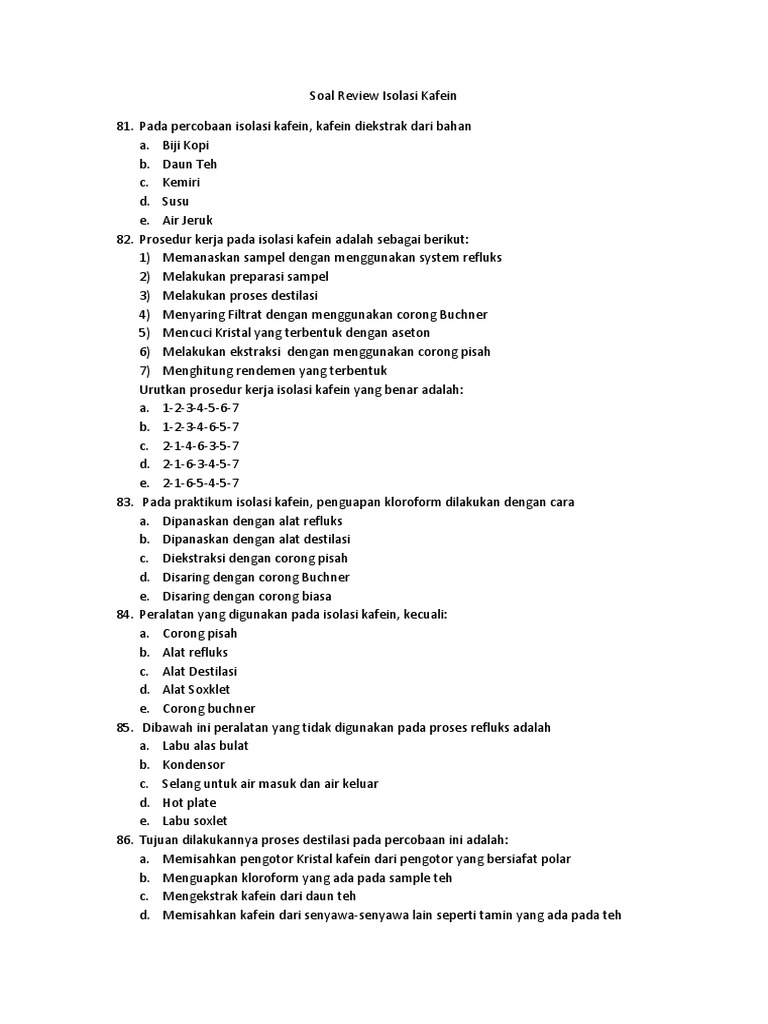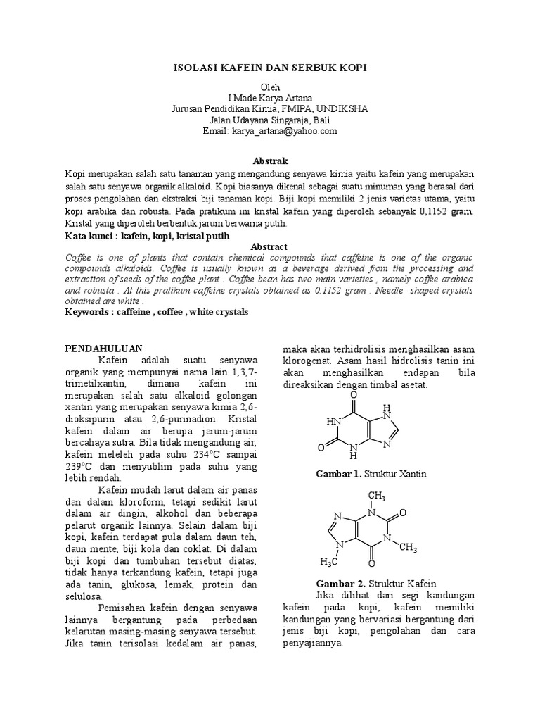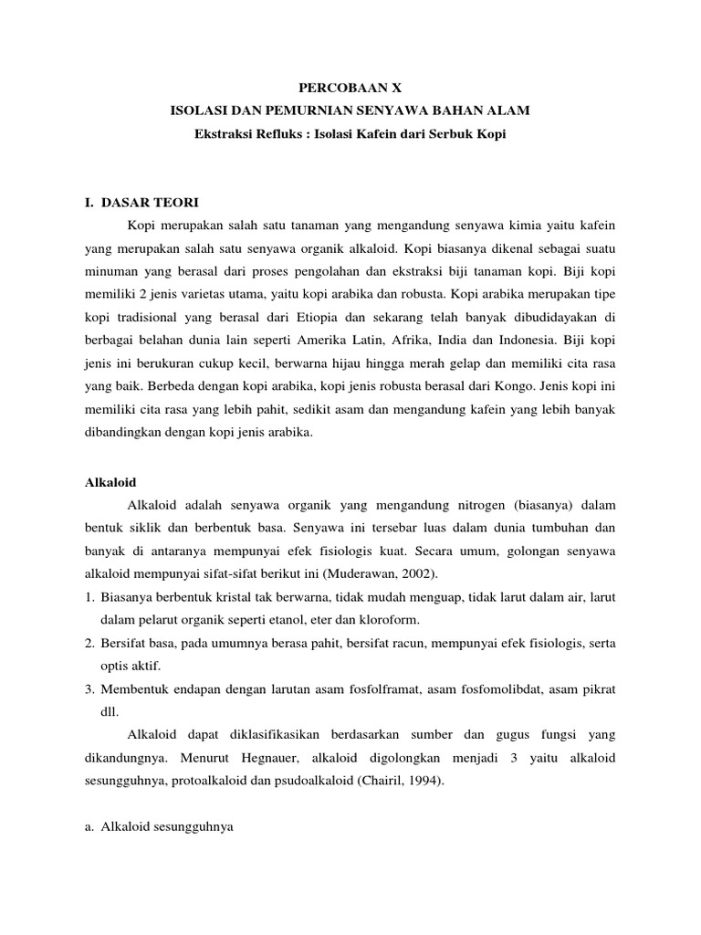 Pdf Isolasi Kafein Dari Kopi Ekstraksi Alkaloid Dengan Refluks Laporan Praktikum Kimia Organik 2 Ardi Issupardi Academia Edu
