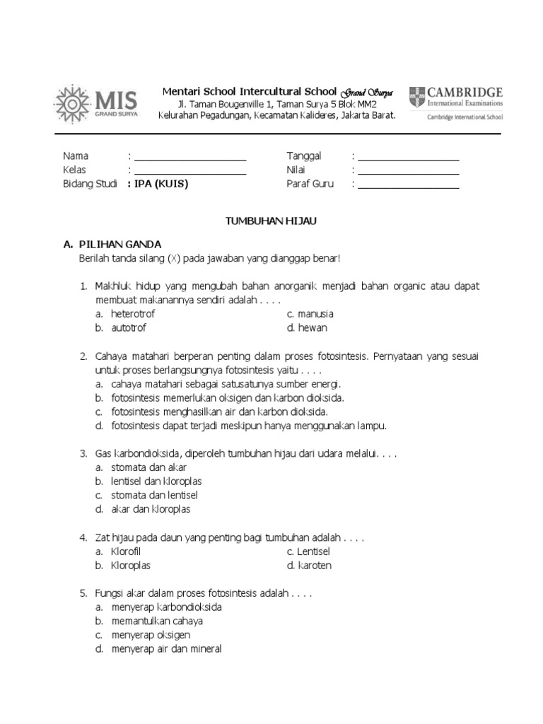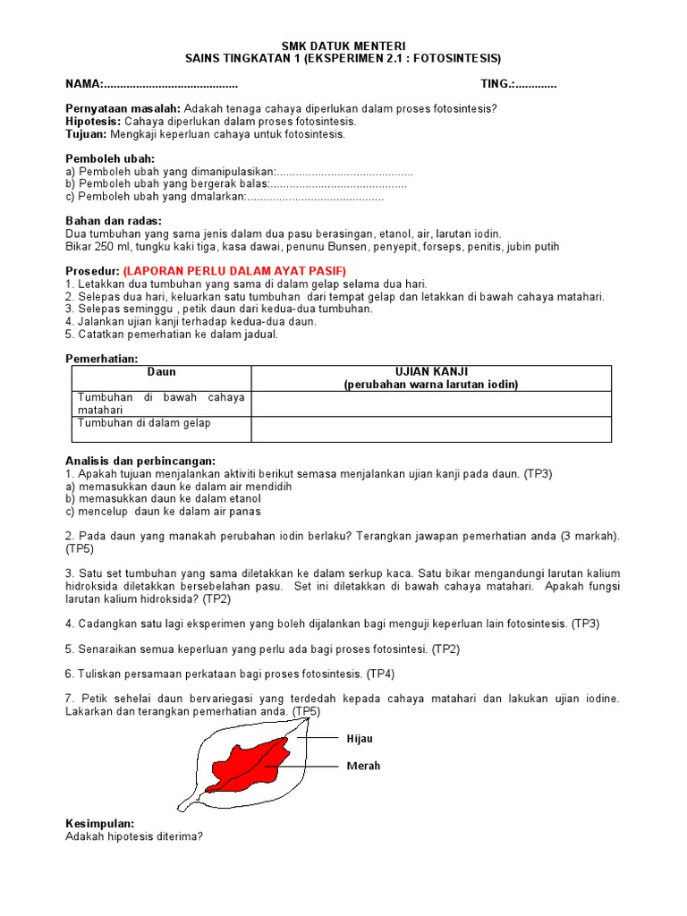Kunci Jawaban Pada Suatu Pengamatan Percobaan Tentang Fotosintesis Ditemukan Data Sebagai Berikut Setelah Ditetesi Iodium Dan Kondisinya Seperti Gambar Dibawah Ini Rofa Education Centre