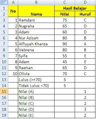 Cara Menggunakan Fungsi Rumus Countif Dan Countifs Di Mircrosoft Excel Belajar Office