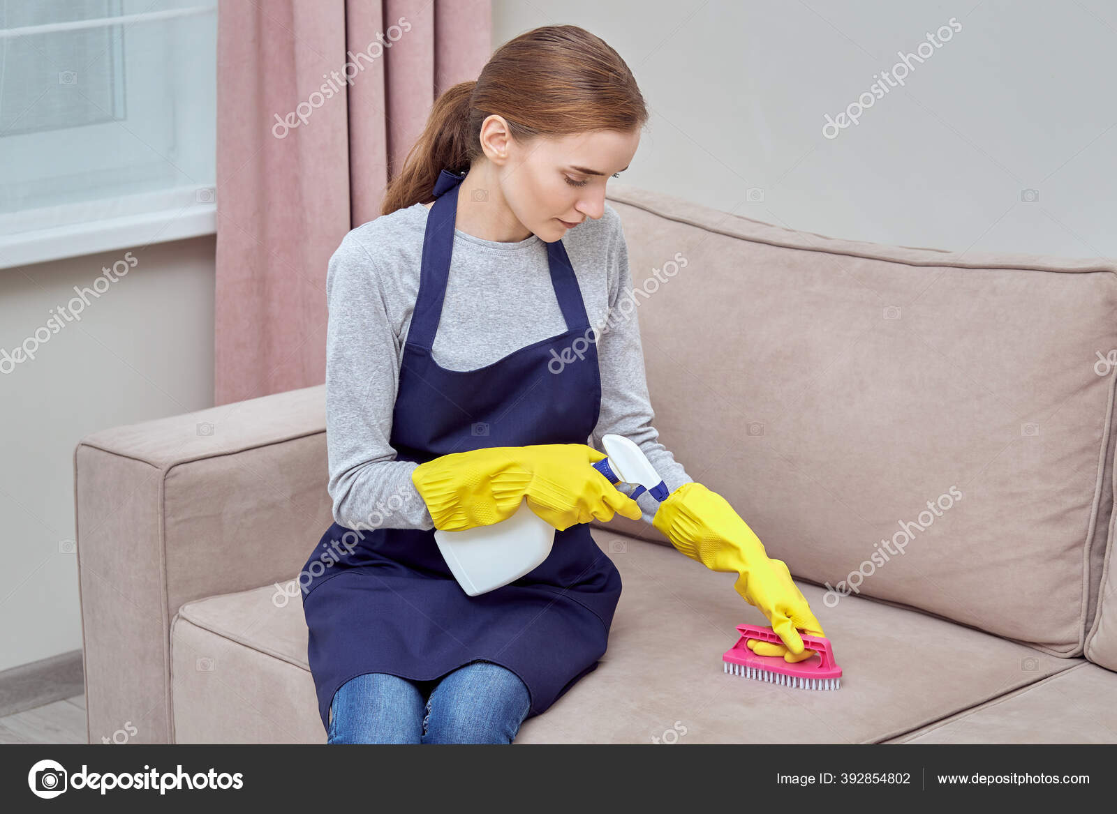 Pembersihan Furnitur Dengan Bahan Kimia Rumah Tangga Gadis Dengan Sarung Tangan Stok Foto C Jbroggi 392854802