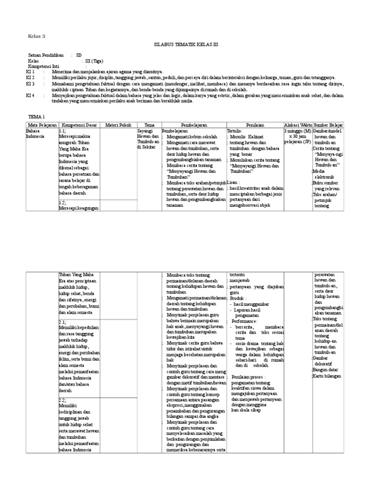 Pemetaan Kompetensi Dasar Kd Kelas 3 Kurikulum 2013 Semester 1 2 Revisi 2018 Sanjayaops