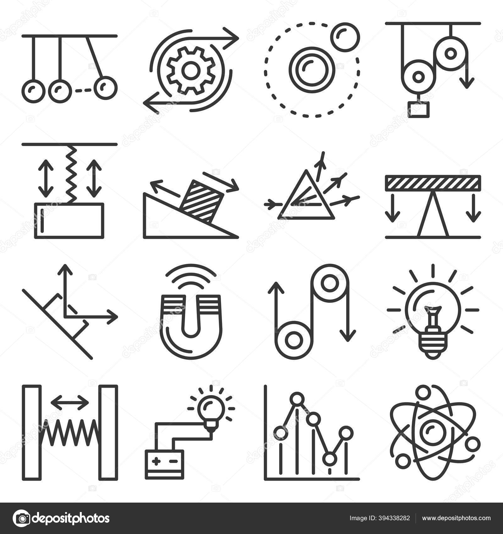 Pictogram Set Dari Garis Garis Sederhana Bintang Fisika Kuadrat Kaliper Stok Vektor C Flatart 373494116
