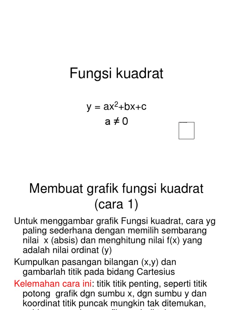 Kuadrat Fungsi Persamaan Dan 2 2 Menggambar Grafik Fungsi Aljabar Sederhana Dan Fungsi Kuadrat Pada Bab Ini Anda Akan Mempelajari Pengertian Fungsi Dan Cara Menggambar Grafiknya Pdf Document