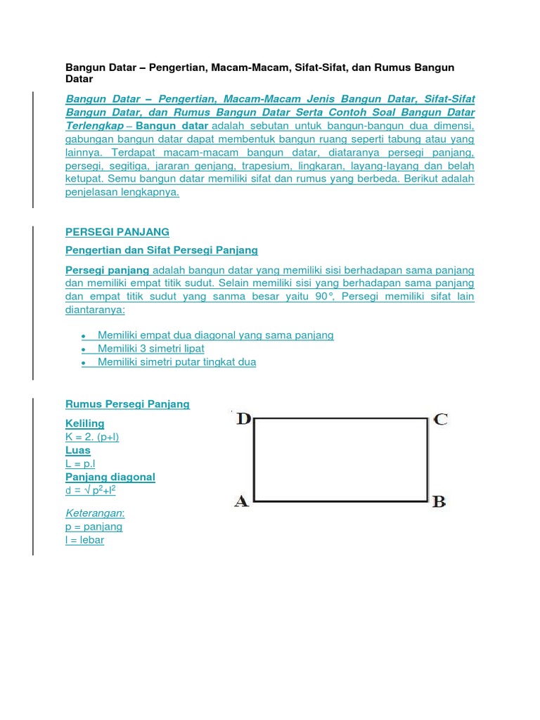 Rumus Bangun Datar Lengkap Persegi Segitiga Lingkaran Dll