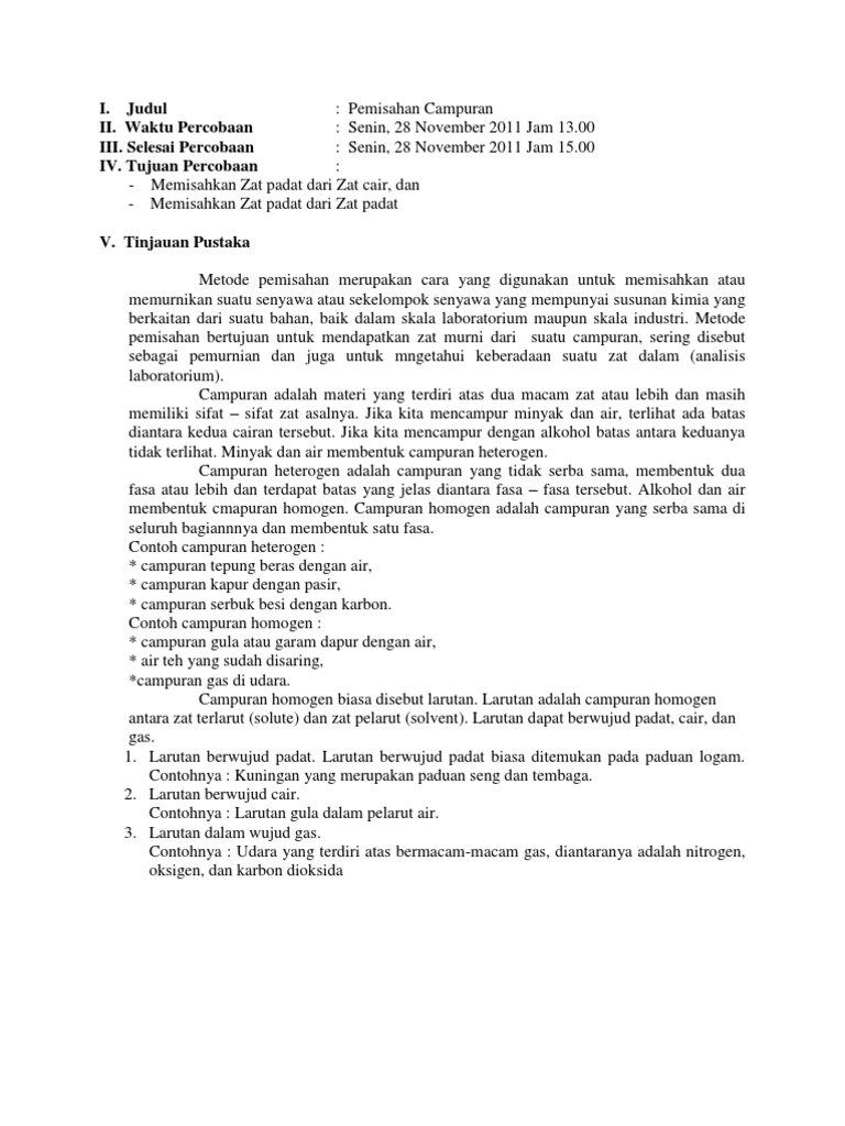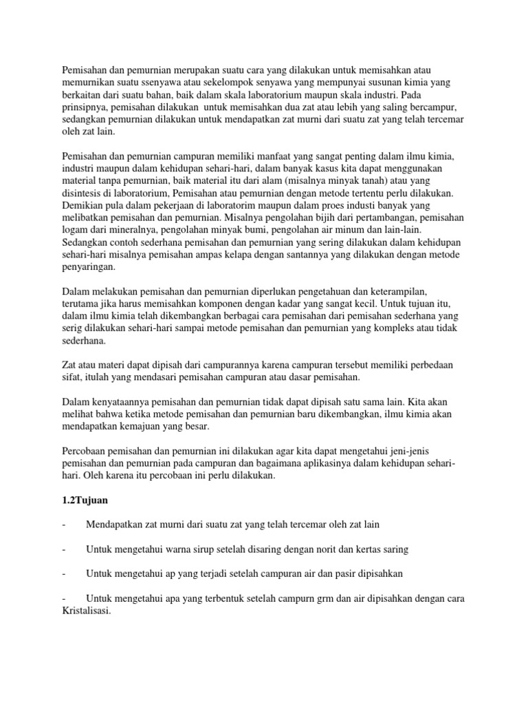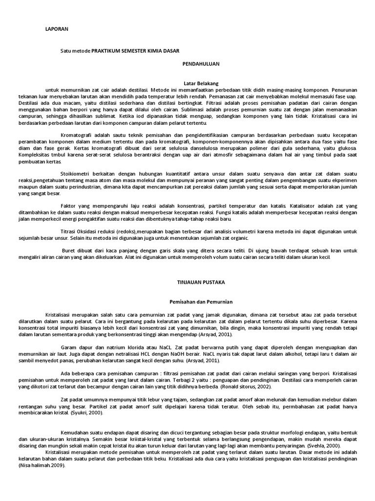 Laporan Praktikum Kimia Pemisahan Campur Doc Laporan Praktikum Pemisahan Campuran Filtrasi Sublimasi Dan Kristalisasi Mata Kuliah Kimia Dasar I Dosen Course Hero