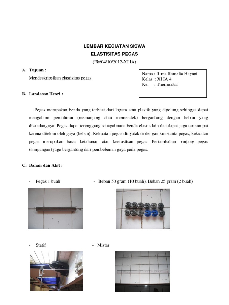 Doc Judul Praktikum Menentukan Konstanta Pegas Pegas Hardi Rahayu Saputra Umri Academia Edu