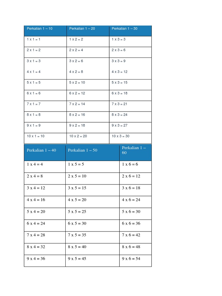 Tabel Perkalian 1 Sampai 50 Lengkap Menggunakan Metode Pythagoras
