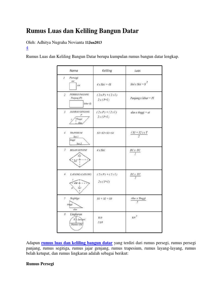 Rumus Keliling Dan Luas Bangun Datar Lengkap Beserta Gambar Juragan Les