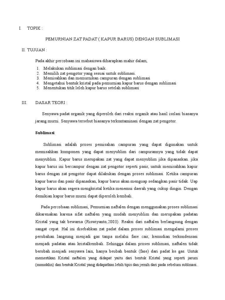 Dapus5 Docx I Judul U201cmelaksanakan Proses Sublimasi Mengikuti Prosedur Kerja U201d Ii Sub Judul U201cproses Sublimasi Pada Campuran Kapur Barus Dan Course Hero