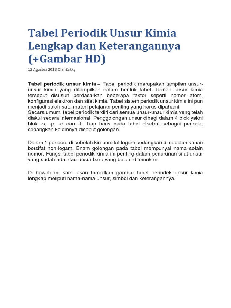 Sistem Periodik Unsur Kimia Tabel Sifat Dan Gambar Hd