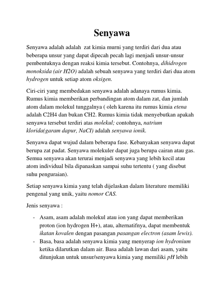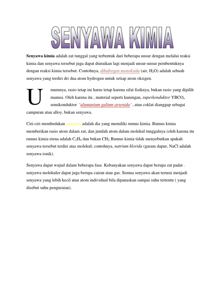 Senyawa Kimia Adalah Zat Tunggal Yang Terbentuk Dari Beberapa Unsur Dengan Melalui Reaksi Kimia Dan Senyawa Tersebut Juga Dapat Diuraikan Lagi Menjadi Unsur