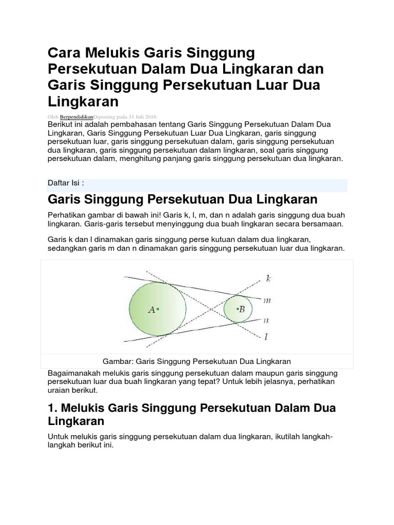 Rumus Garis Singgung Persekutuan Dalam Dan Luar Kalau Yg Dicarinya Salah Satu Dari Jari Dan Brainly Co Id