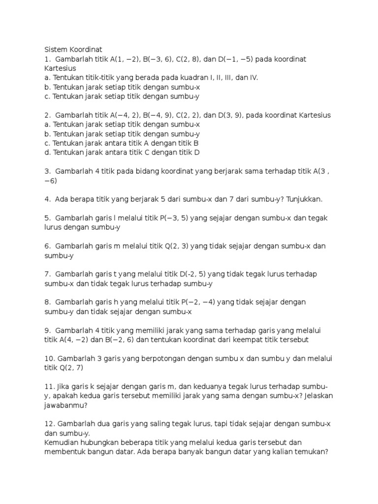 Posisi Titik Dan Garis Pada Koordinat Cartesius Kelas Pintar