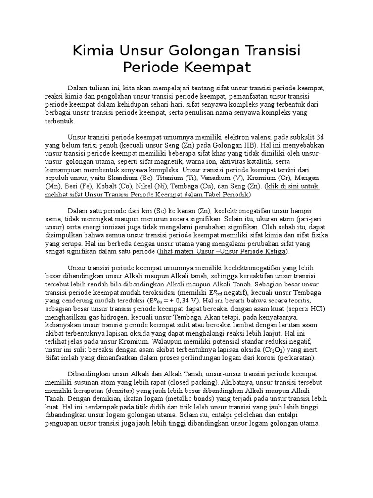 Unsur Golongan Transisi Periode Empat Docx Document