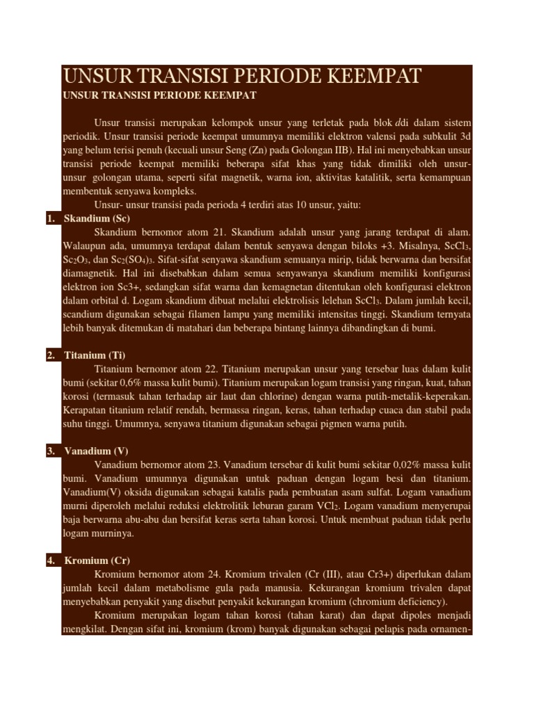 Unsur Transisi Periode Keempat Tutorialpelajaran Com