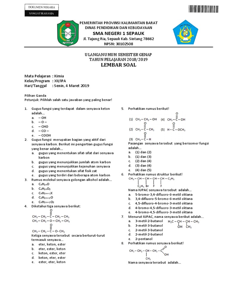 Soal Ulum Smt Genap Kimia Xii Ipa Th 2019