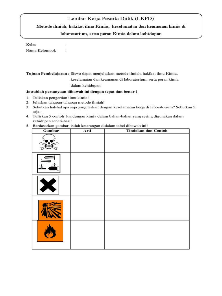 Lembar Kerja Peserta Didik Lkpd Hakikat Ilmu Kimia Tutorialpelajaran Com