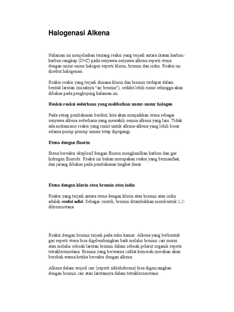 Z Isi Tugas Ko Doc Bab 1 Pendahuluan 1 Latar Belakang Alkena Merupakan Suatu Senyawa Hidrokarbon Yang Memiliki Satu Atau Lebih Ikatan Rangkap Dua Atom Course Hero