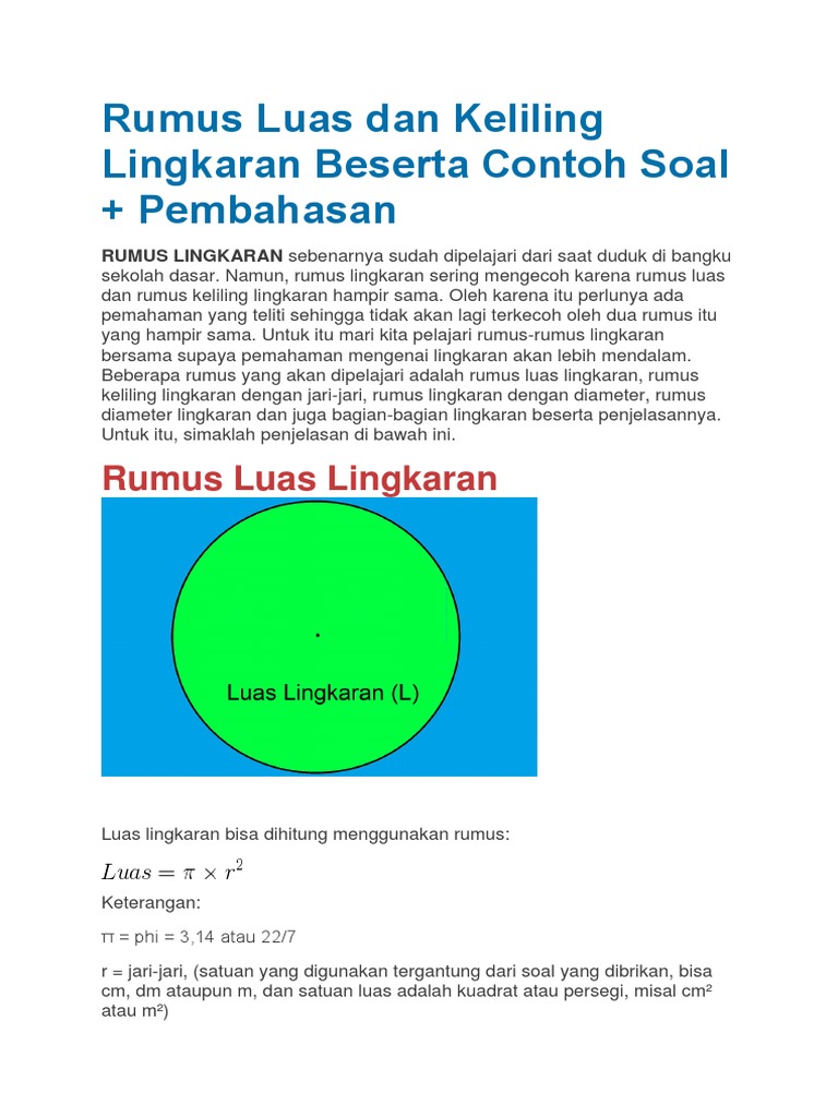 Cara Menghitung Luas Lingkaran Dengan Diameter Diketahui Rumus Cute766