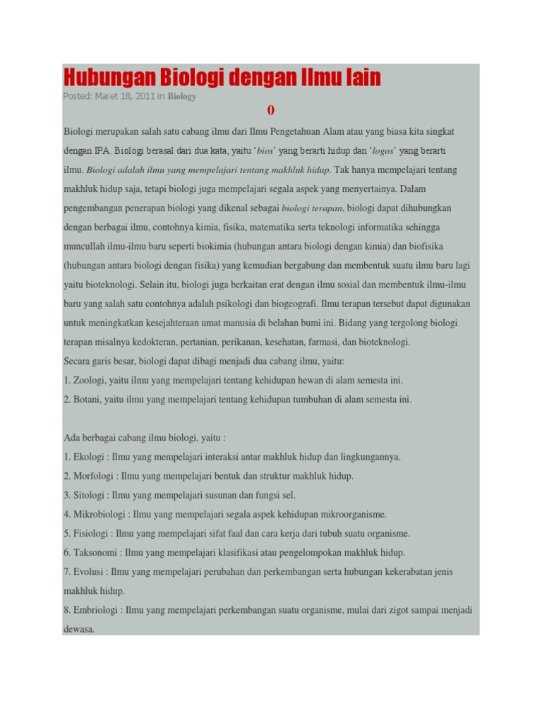 Doc Hubungan Ilmu Kimia Dan Ilmu Biologi Nur Wahidatun Academia Edu