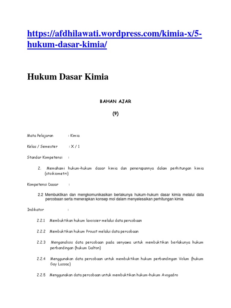 Hukum Dasar Kimia Dan Perhitungan Kimia Dari Percobaan Yang Dilakukannya Proust Mengemukakan Teorinya Pdf Document