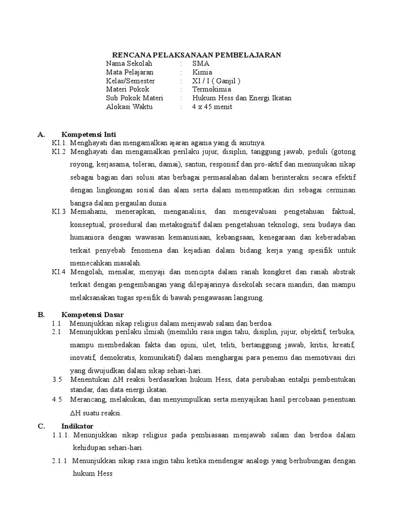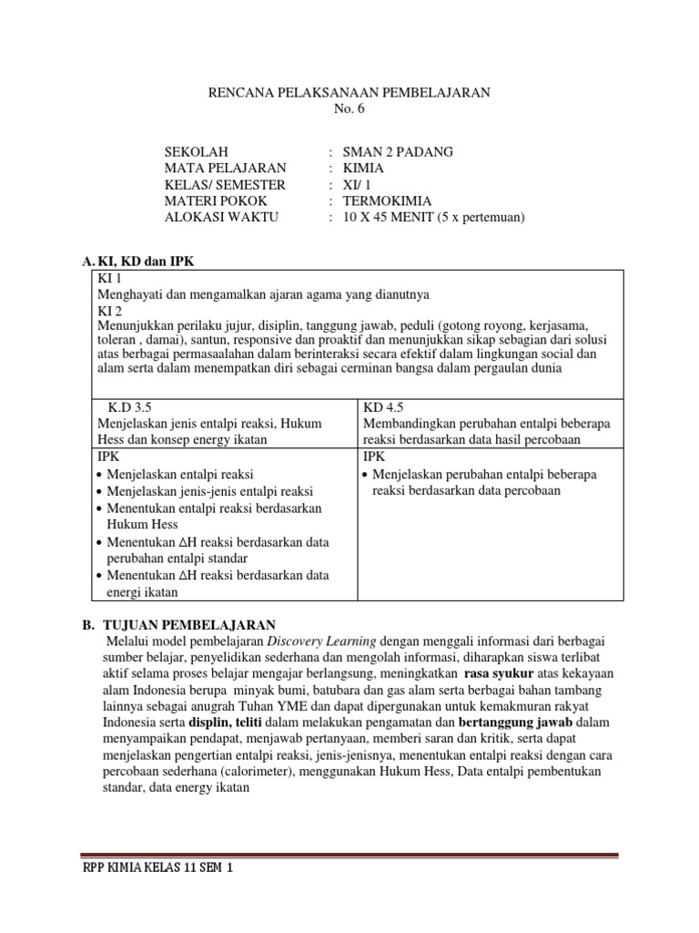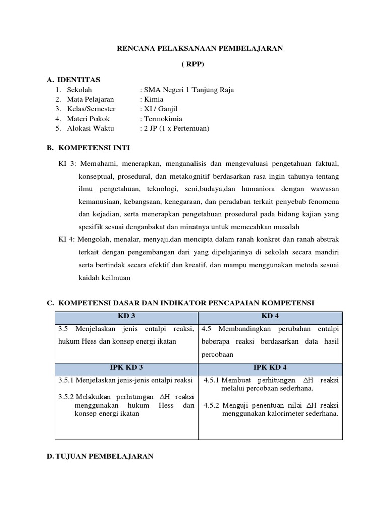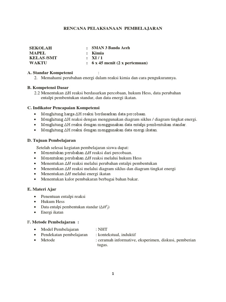 Doc Rencana Pelaksanaan Pembelajaran Nama Murtini Sekolah Sma Negeri 1 Godean Mata Pelajaran Kimia Kelas Semester Xi 1 Alokasi Waktu 30 Menit Murtini Ningsih Academia Edu