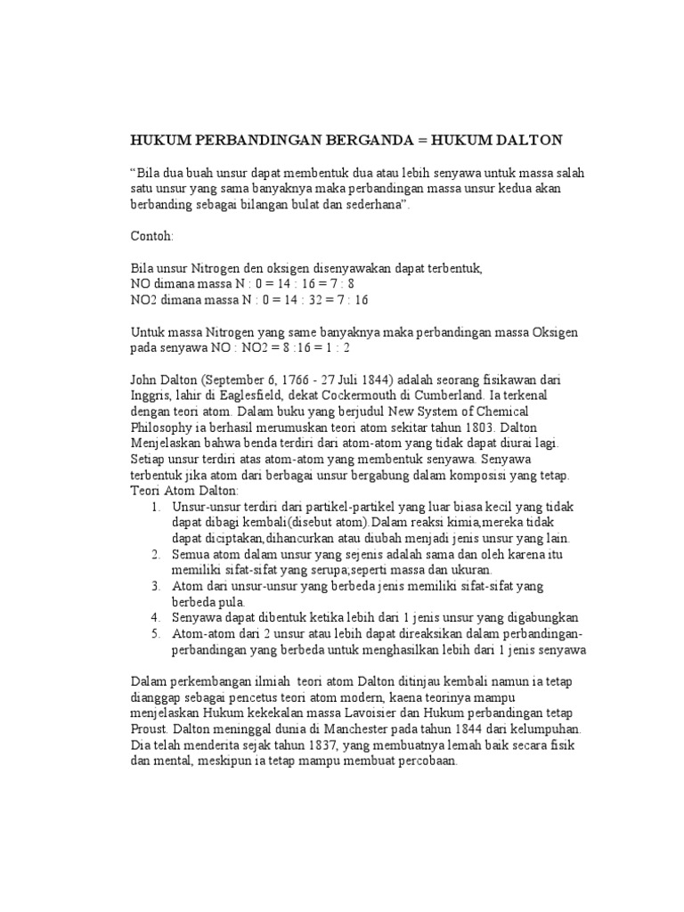 Kalkulator Hukum Dalton Hukum Kelipatan Perbandingan Hukum Perbandingan Berganda Urip Dot Info