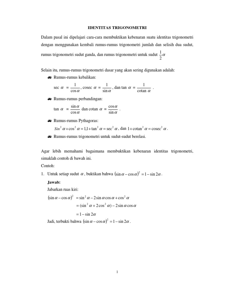 Identitas Trigonometri Sudut Istimewa Sifat Rumus Dan Contoh