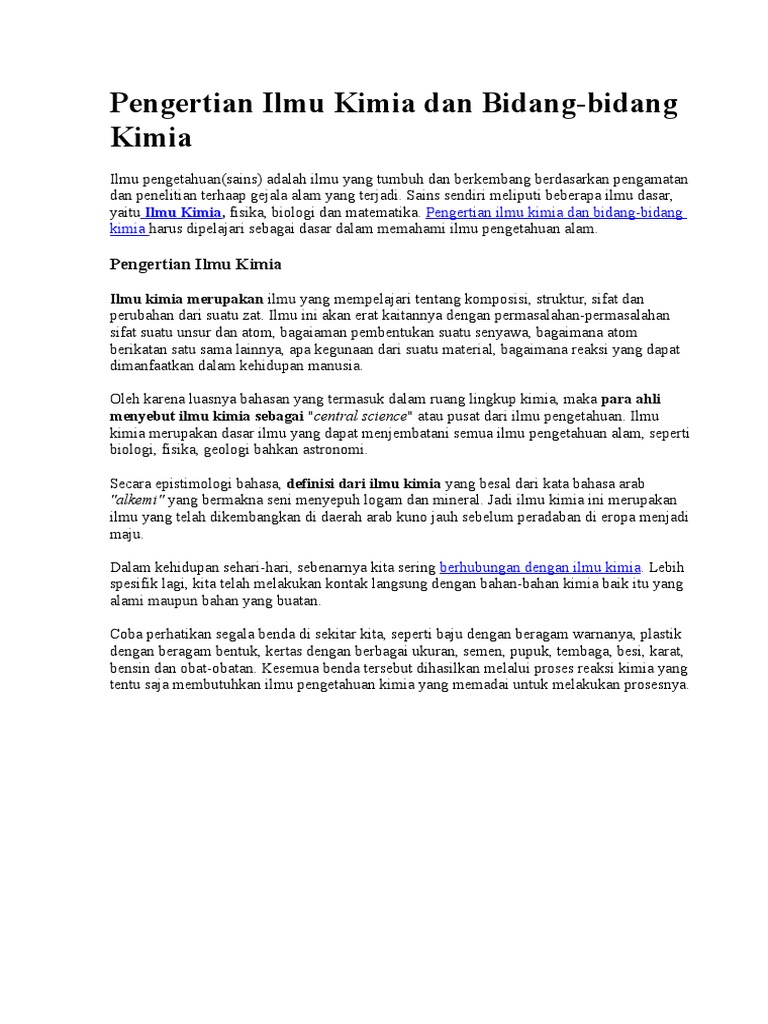 Pengertian Ilmu Kimia Dan Bidang Bidang Kimia My Stupid Theory