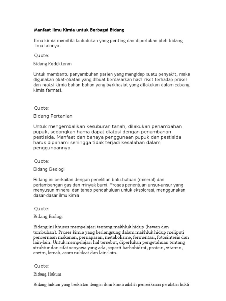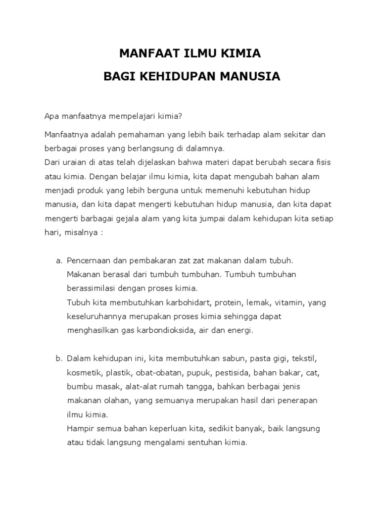 Peranan Ilmu Kimia Dalam Kehidupan Sehari Hari